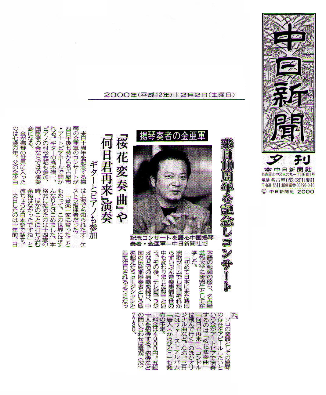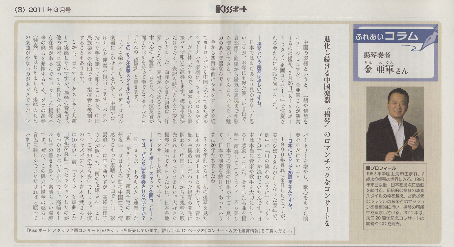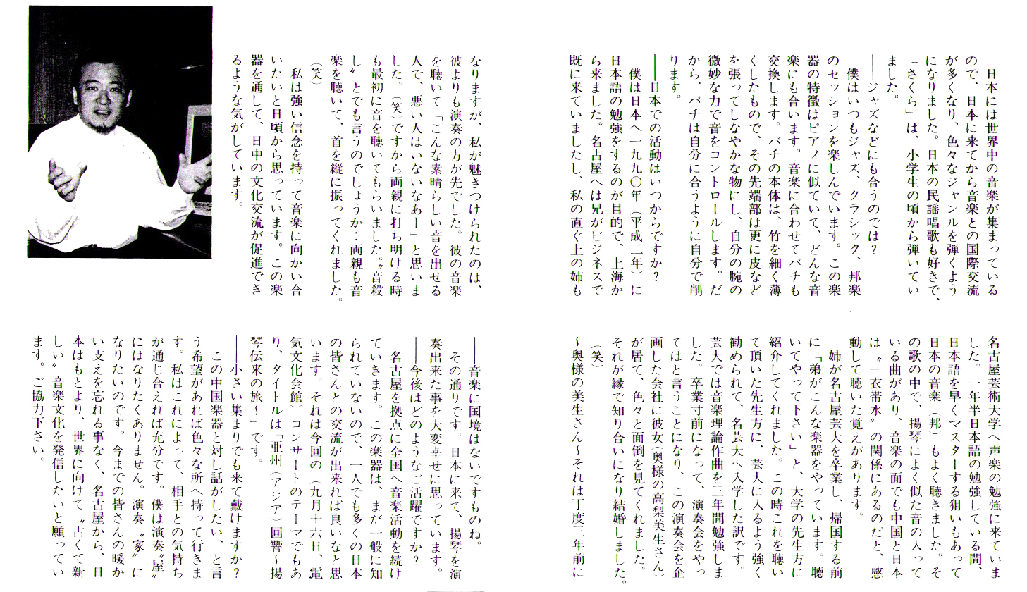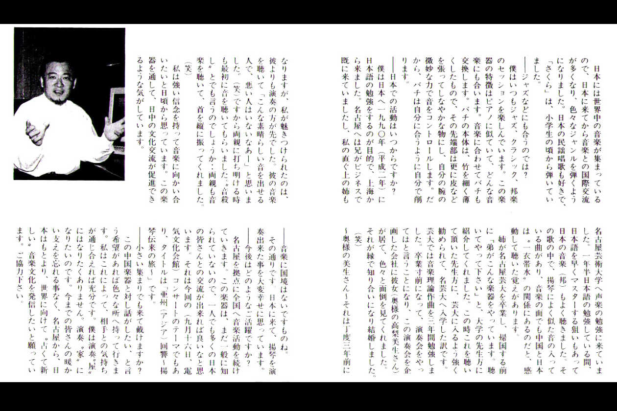 | 2005.11 | NHK-BS放送「ふれあいホール/出会いのコンサート〜音楽で旅する上海〜」出演 |