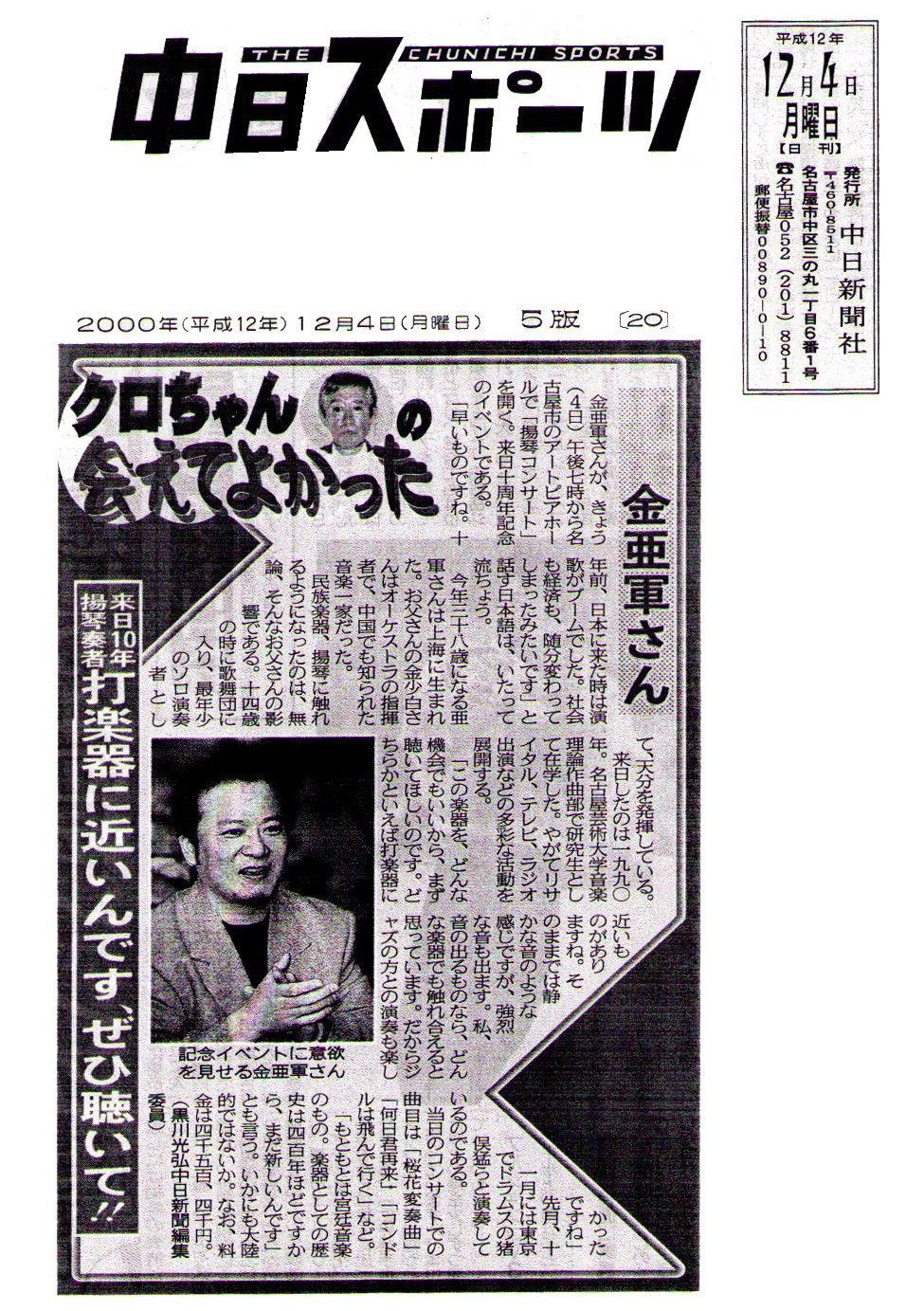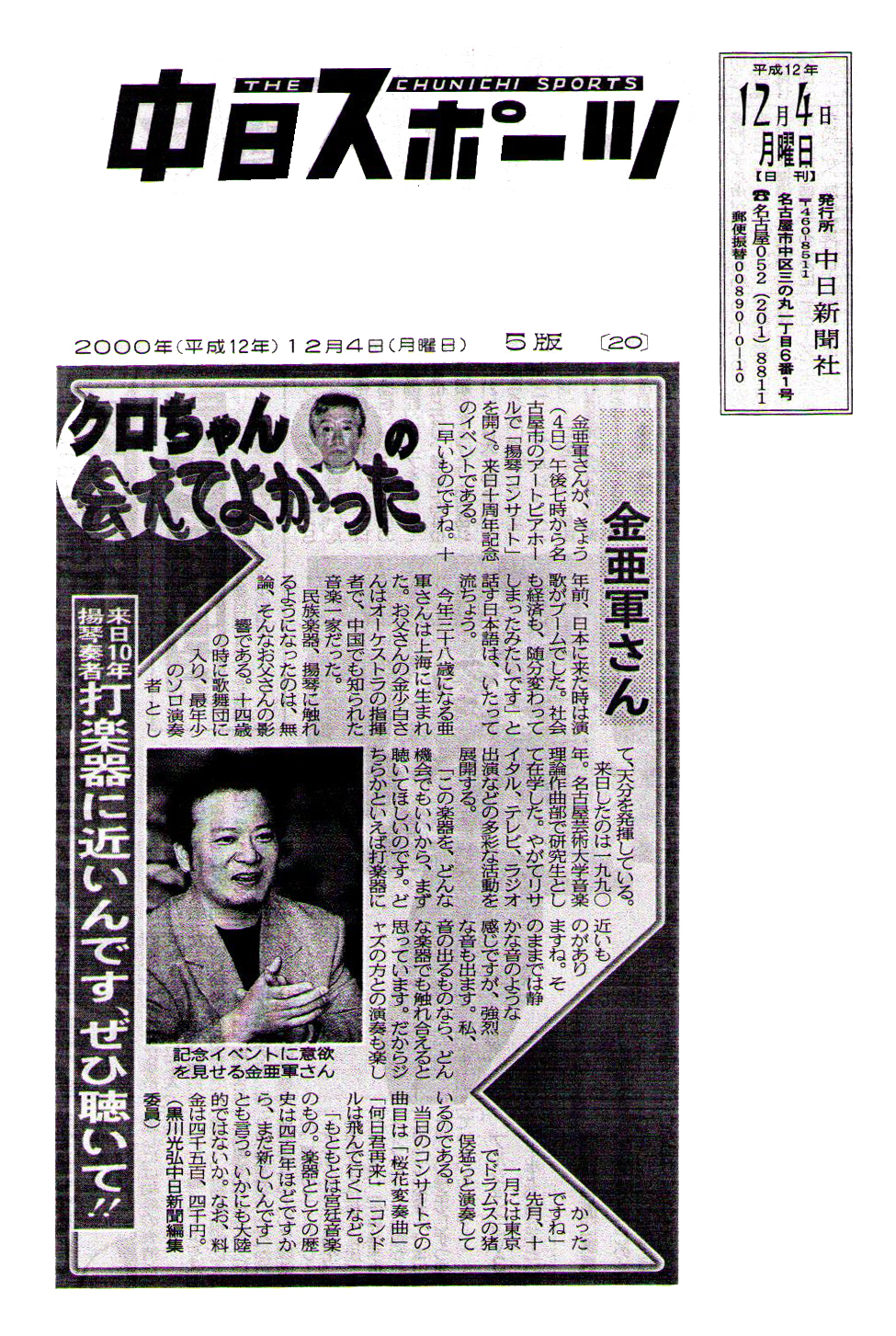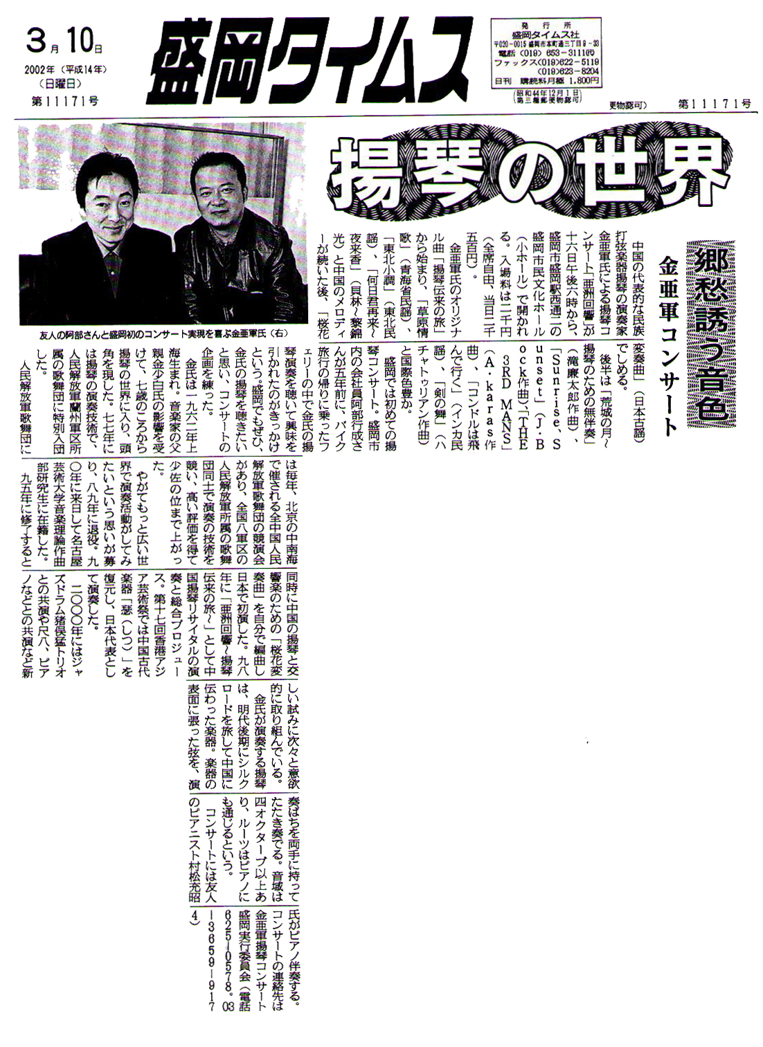 | 2005.11 | NHK-BS放送「ふれあいホール/出会いのコンサート〜音楽で旅する上海〜」出演 |